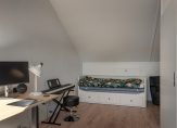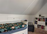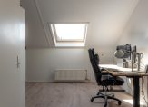 Vaste trap naar de volwaardige zolderverdieping met een royale vierde kamer, ideaal als slaapkamer, werkplek of hobbyruimte. De cv-installatie (2014) is netjes weggewerkt in een kast.