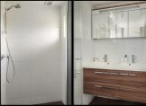 1e Verdieping: overloop, drie slaapkamers, waarvan 2 met dubbel glas en één met vaste kasten. De moderne badkamer is voorzien van een ruime douche en dubbel wastafelmeubel.