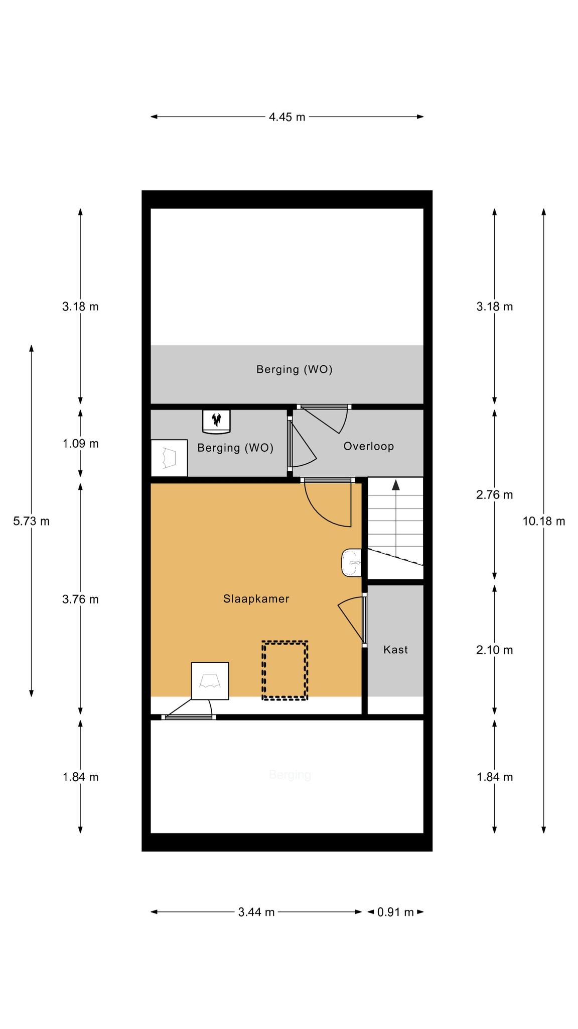 Bereikbaar middels vaste trap, bergruimte, cv-ketelopstelling, ruime (4e) slaapkamer met vaste kast.