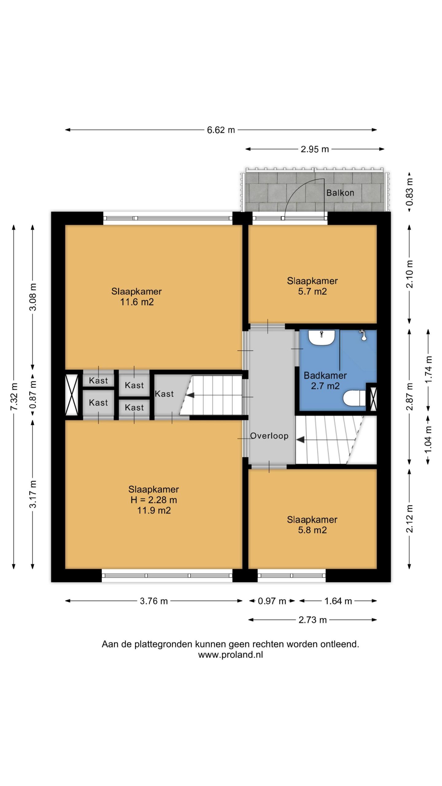 De overloop geeft toegang tot vier slaapkamers, waarvan twee zijn voorzien van vaste kasten. Eén slaapkamer beschikt bovendien over een deur naar het balkon. De badkamer is uitgerust met een douche, wastafel en tweede toilet.