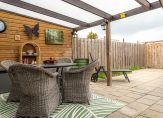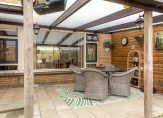 Vanuit de keuken is er een doorgang naar de bijkeuken, voorzien van witgoedaansluitingen en een achterdeur naar de overkapping – ideaal voor het buitenleven, ook bij minder mooi weer.