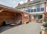 – besloten achtertuin op het zuiden, met fijne overkapping en schuurtje voor de fietsen.