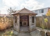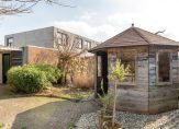 De woning is voorzien van van carport, garage, overkapping achter de woonkamer en een eenvoudig tuinhuisje.