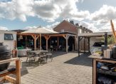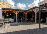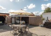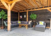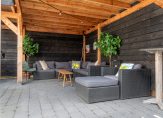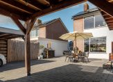De achtertuin ligt gunstig op het zuiden en beschikt over een sfeervolle, L-vormige overkapping – perfect voor lange zomeravonden of sfeervolle herfst-momenten.