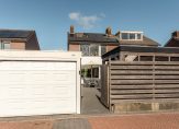 – via de elektrisch bedienbare deur, kom je in de achtertuin met carport; er is ruimte voor 2 auto’s op eigen terrein.