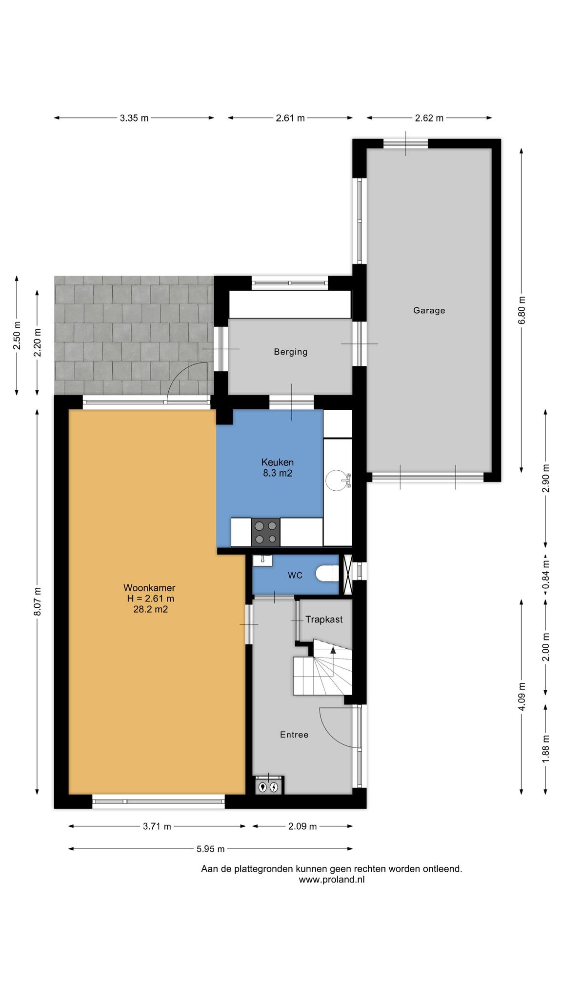 overdekte zij-entree, ruime hal met meterkast, provisie/trapkast, trapopgang naar de 1e verdieping, gemoderniseerd toilet, woonkamer (doorzon) met zicht over plantsoen, moderne open keuken in L-opstelling, doorgang naar de geïsoleerde bijkeuken met achter-entree en doorgang naar de eveneens aangebouwde garage.