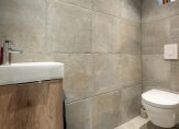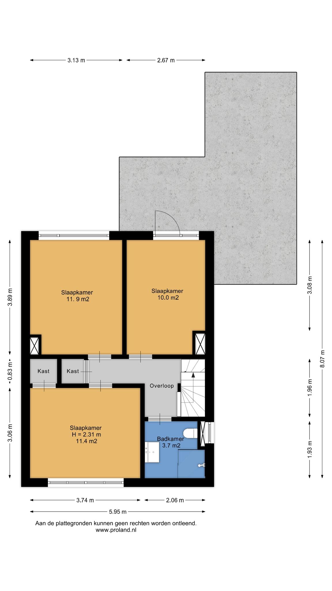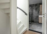 overloop met praktische vaste kast, 3 ruime slaapkamers waarvan de voorste met een vaste kast en een van de achterste slaapkamers heeft een deur naar het dak van de bijkeuken, moderne badkamer o.a. voorzien van douche, toilet en wastafelmeubel.