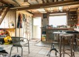voorentree, hal, toilet, trapopgang, knusse woonkamer met open haard, open keuken met provisie kelder, bijkeuken met cv-ketel opstelling, kast met witgoedopstelling, achter-entree naar de tuin met sfeervolle overkapping en vrijstaande houten schuur die tevens via de steeg benaderd kan worden.