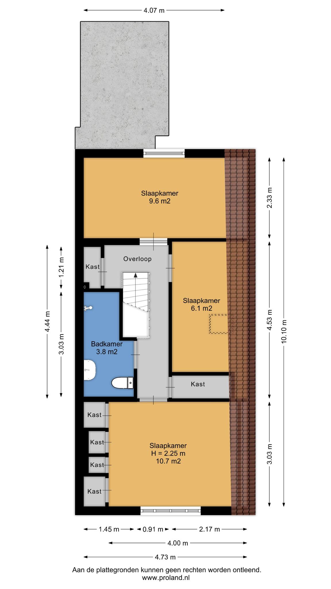 overloop met bergruimte, 3 slaapkamers met vaste kasten, badkamer voorzien van douche, wastafel en 2e toilet.