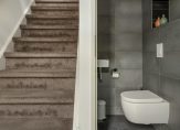 De bovenverdieping omvat een overloop, drie ruime slaapkamers en een luxe, moderne badkamer uitgerust met een douche, tweede toilet en dubbele wastafel.