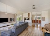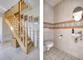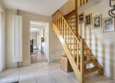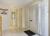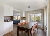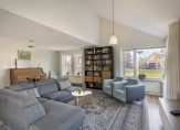 Bij binnenkomst in de royale hal ervaart u meteen de uitstraling en klasse, die zo kenmerkend zijn voor deze woning. Hier bevinden zich het toilet en de toegang tot de leefruimtes. De lichte woonkamer valt direct op door de grote raampartijen, die zorgen voor een fijne verbinding met buiten. De pelletkachel voegt warmte en sfeer toe, terwijl de en-suite deuren de woonkamer op elegante wijze verbinden met de woonkeuken. De woonkeuken is een heerlijke plek voor lange diners en gezellige momenten. Dankzij de schuifpui staat de keuken in direct contact met de tuin en het overdekte terras.