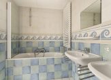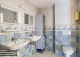 – 2e badkamer met ligbad, dubbele wastafel en hangend toilet.