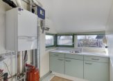 – was-/stookruimte met CV-combiketel, wasmachineaansluiting en spoelblok.
