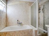 – badkamer met ligbad, douchecabine en wastafelmeubel;