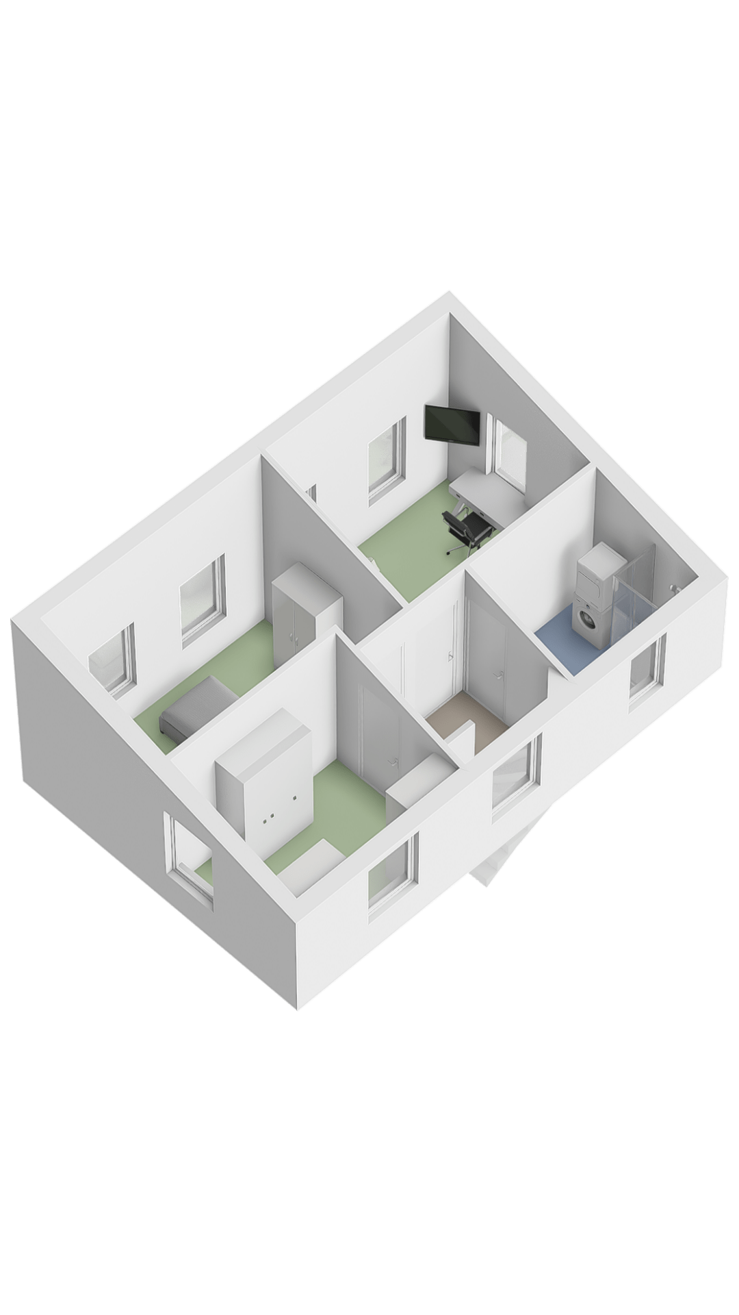 – 2e badkamer met douchecabine, wastafel, toilet en wasmachine-aansluiting.