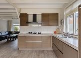 – open keuken met veel kastruimte en voorzien van inbouwapparatuur.