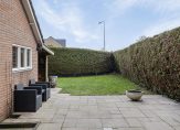 De zonnige tuin op het zuiden is een heerlijke plek om te ontspannen en biedt volop privacy. Hier is tevens een overkapping en de vrijstaande garage. De ruime oprit aan de voorzijde biedt voldoende parkeergelegenheid op eigen terrein.