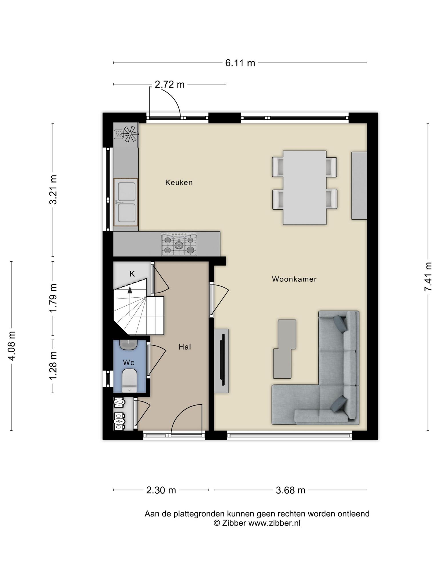 – hal met toilet en provisiekast;