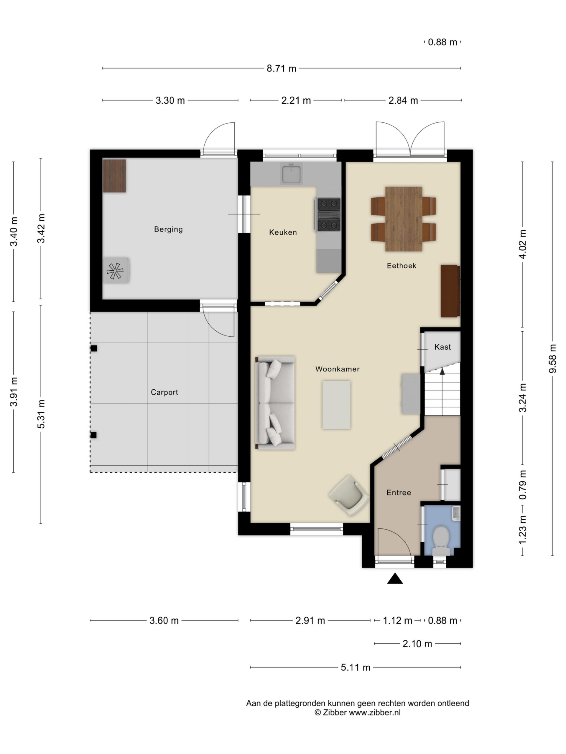Via de hal met toilet kom je in de ruime Z-vormige woonkamer. Dankzij de grote ramen en twee openslaande tuindeuren valt het licht rijkelijk binnen en voelt de ruimte direct prettig aan. De woonkamer staat in verbinding met de halfopen keuken, die een mooie basis vormt voor het creëren van een moderne leefkeuken. Aansluitend vind je de berging met tuindeur: praktisch voor fietsen, voorraad en gereedschap. De berging biedt bovendien mogelijkheden voor uitbreiding. Zo kun je er bijvoorbeeld voor kiezen om de keuken te verplaatsen en daarmee een royale, eigentijdse leefruimte te creëren. Zo kun je er bijvoorbeeld voor kiezen om de keuken te verplaatsen en daarmee een royale, eigentijdse leefruimte te creëren.