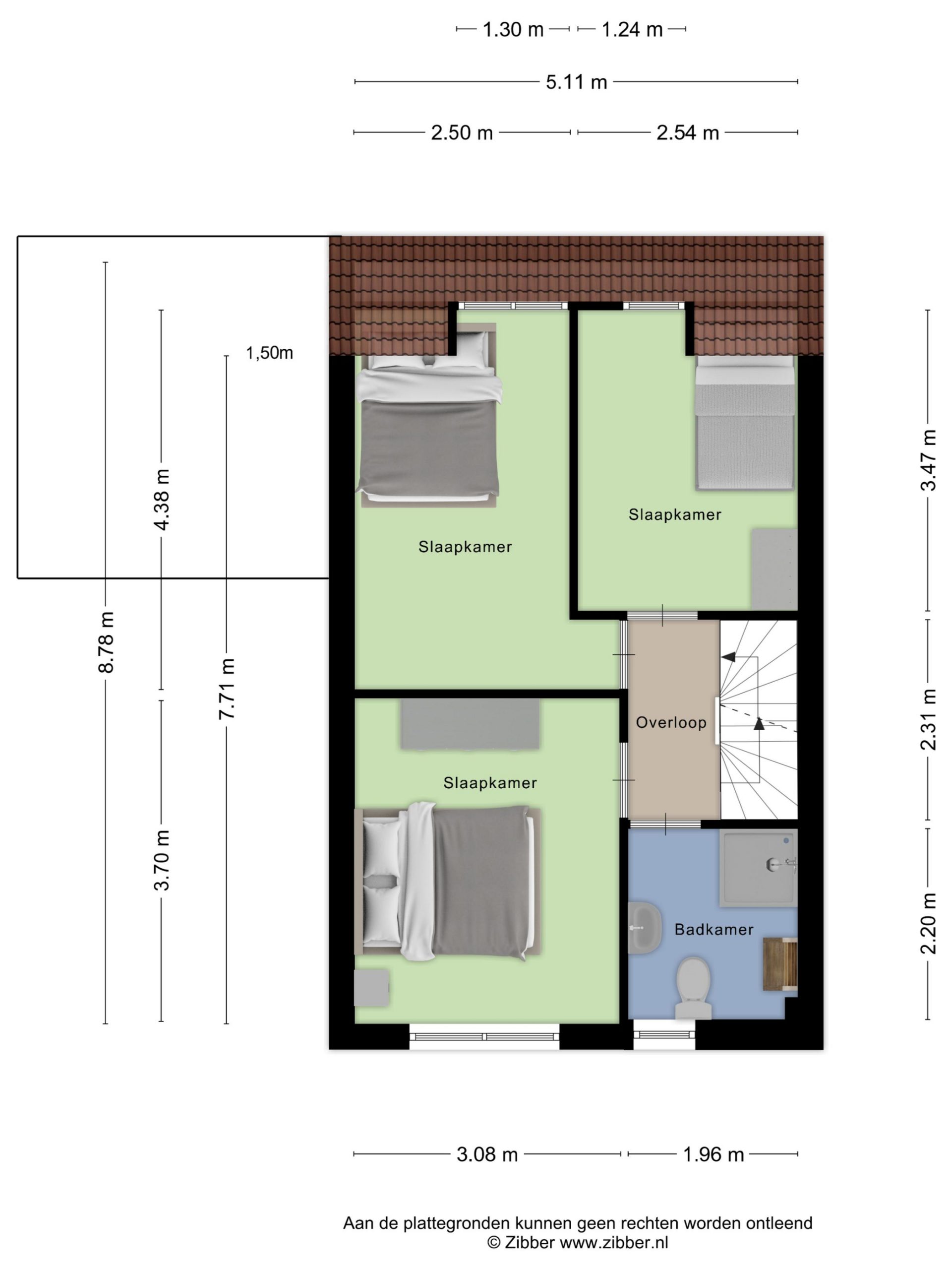 De 1e verdieping telt 3 slaapkamers, waarvan 2 met dakkapel, die voor extra licht en ruimte zorgt. De badkamer is voorzien van een douche, wastafel en toilet. De vaste trap leidt naar een verrassend ruime open zolderkamer met zijraam. Hier vind je de aansluiting voor de wasmachine en de CV-combiketel. Dankzij de ruimte en hoogte zijn hier allerlei gebruiksmogelijkheden denkbaar: een extra slaapkamer, werkkamer of hobbyruimte.