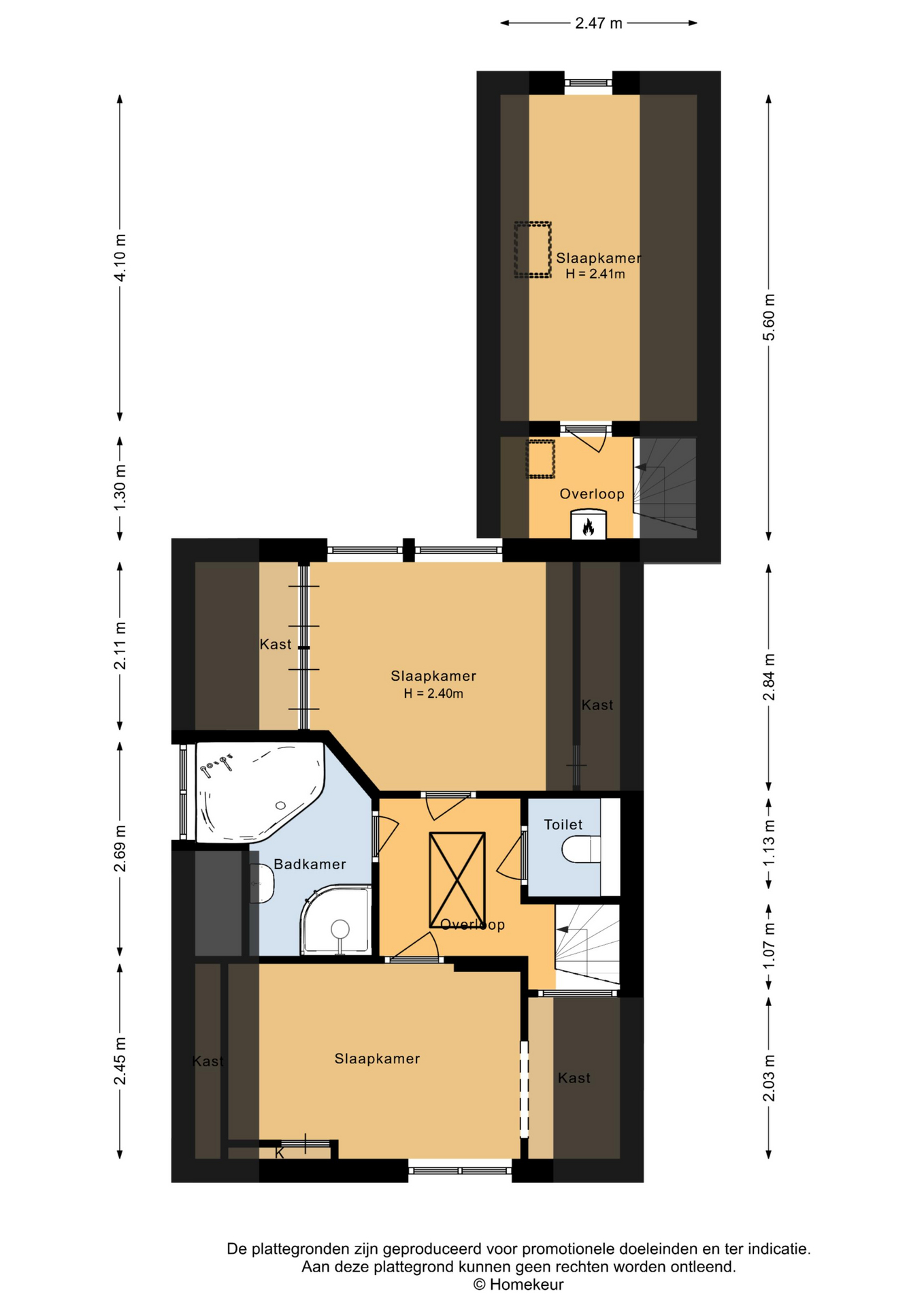 De zolder biedt nog meer ruimte en strekt zich uit over de gehele lengte van het huis. Op de overloop vind je een praktische inbouwkast.
