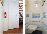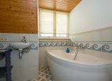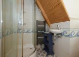 De badkamer, op de eerste verdieping, is slim ontworpen. Je kunt er heerlijk ontspannen in bad na een lange dag of ‘s ochtends opfrissen onder de douche. Een wastafel maakt het geheel compleet, terwijl het aparte toilet op dezelfde verdieping erg praktisch is.