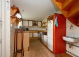 Boven de keuken bevindt zich een fantastische ruimte, ideaal als atelier (met noorderlicht), tienerkamer of logeerkamer, met een aparte buiteningang via de steeg, waardoor zelfs een B&B beginnen mogelijk is.