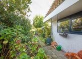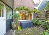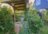 Vanuit de keuken loop je direct de achtertuin in. De ligging van de tuin moet je zien om te waarderen. Met de lange zijde op het zuiden geniet je van heerlijke zonuren in de ochtend, middag en avond. Je kunt er ontspannen in privacy, zowel in de zon als in de schaduw. Bijzonder handig is de grondwaterput voor eigen water, en de tuin heeft ook een praktische vrijstaande houten berging voor al je tuingereedschap of andere spullen. Achterom loop je door het hek het veld op, wat het leven extra comfortabel en veilig maakt voor kleine kinderen.