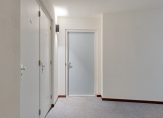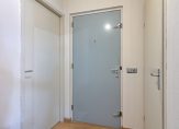Ruime entree met videofooninstallatie en stucwerk wandafwerking. Extra opbergruimte/inloopkast.