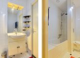 Op dezelfde verdieping ligt nog een ruime separate afgesloten berging met vloerbetegeling en aansluitingen voor de wasapparatuur en opbergruimte. In de centrale hal bevindt zich de meterkast (5 groepen, 2 aardlekschakelaars, dag/nachtstroom). C.V. Kast naast entree appartement met C.V.-combiketel (2014).