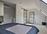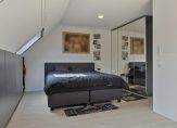 Open verdieping met ruime 2e slaapkamer. De slaapkamer is voorzien van een laminaat vloer, 2 dakramen en airconditioning. Inbouwkast met hierin de technische installatie (warmtepomp, boiler en omvormer van de zonnepanelen).