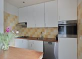 Hal met laminaat vloer en stucwerk wandafwerking. Ruime, lichte woonkamer met laminaat vloer en stucwerk wandafwerking. De woonkamer is aan de achterzijde uitgebouwd en is voorzien van een deur naar de achtertuin en een airconditioning (2020). Praktische trap/kelder kast; ideaal voor bijvoorbeeld uw provisie. In deze trapkast bevinden zich de nuts voorzieningen (meterkast met 6 groepen en 2 aardlekschakelaars). Half open keuken aan de achterzijde met laminaat vloer en deels betegelde wandafwerking. Rechte keuken opstelling met verschillende inbouwapparatuur; koelkast, oven, vaatwasser, gaskookplaat, afzuigkap en verschillende opbergkastjes en lades. De inbouwapparatuur is in 2021/2022 vernieuwd. Eiland met opbergkastjes en lades. Ruim, deels betegeld toilet met wastafel met meubel. In het meubel is de wasmachine netjes geplaatst.