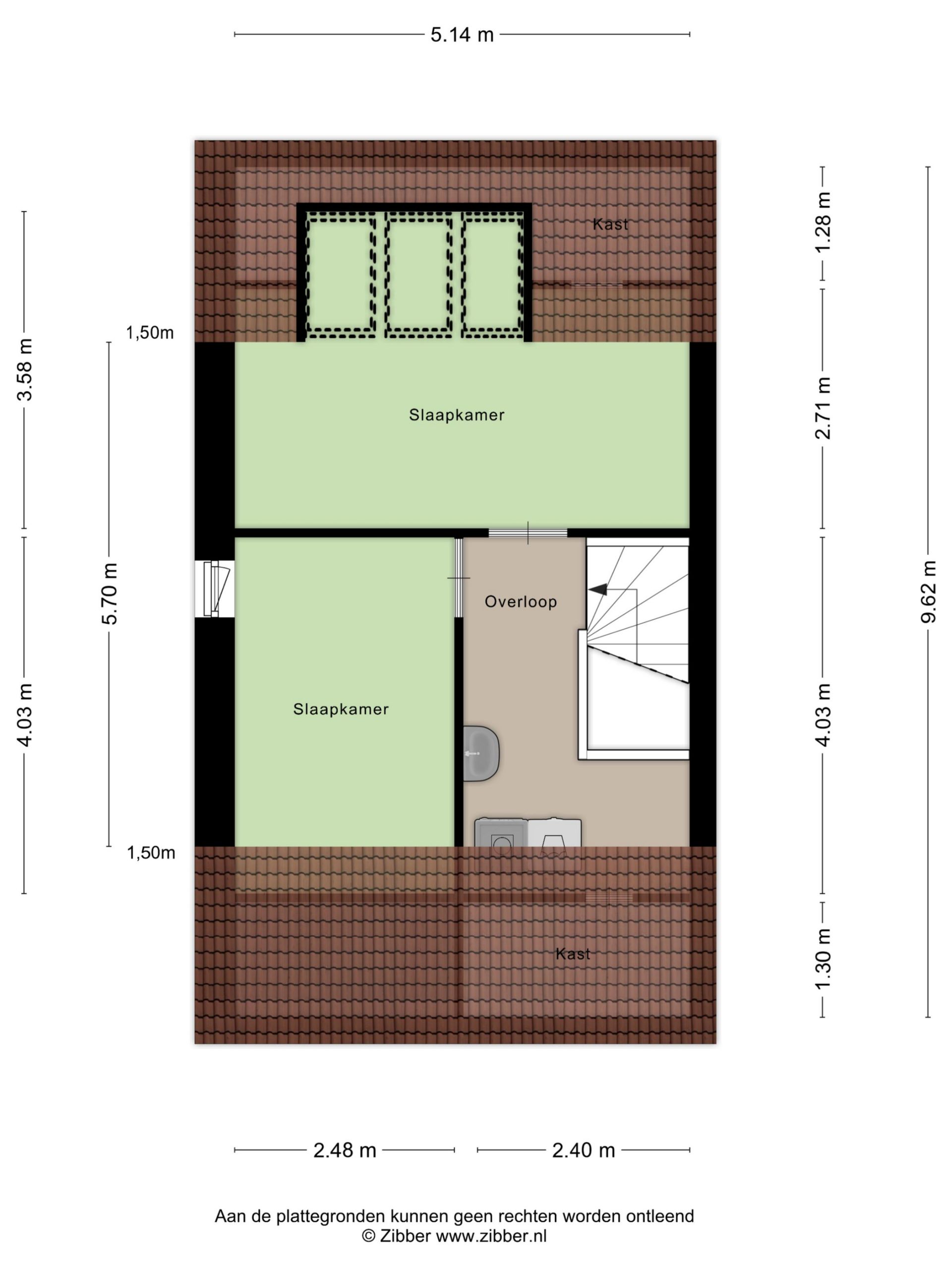 – Slaapkamer 5 aan de achterzijde met laminaatvloer, stucwerk wandafwerking en 3 Velux dakramen.
