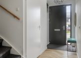 Entree met visgraat PVC-vloer en strak stucwerk wandafwerking. Meterkast met 10 groepen, 3 aardlekschakelaars en glasvezelaansluiting. In de kast in de hal bevindt zich tevens de unit van de stadsverwarming. Deels betegeld toilet met hangcloset, fonteintje en afzuiging.