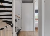 – Overloop met laminaat vloer en stucwerk wandafwerking.
