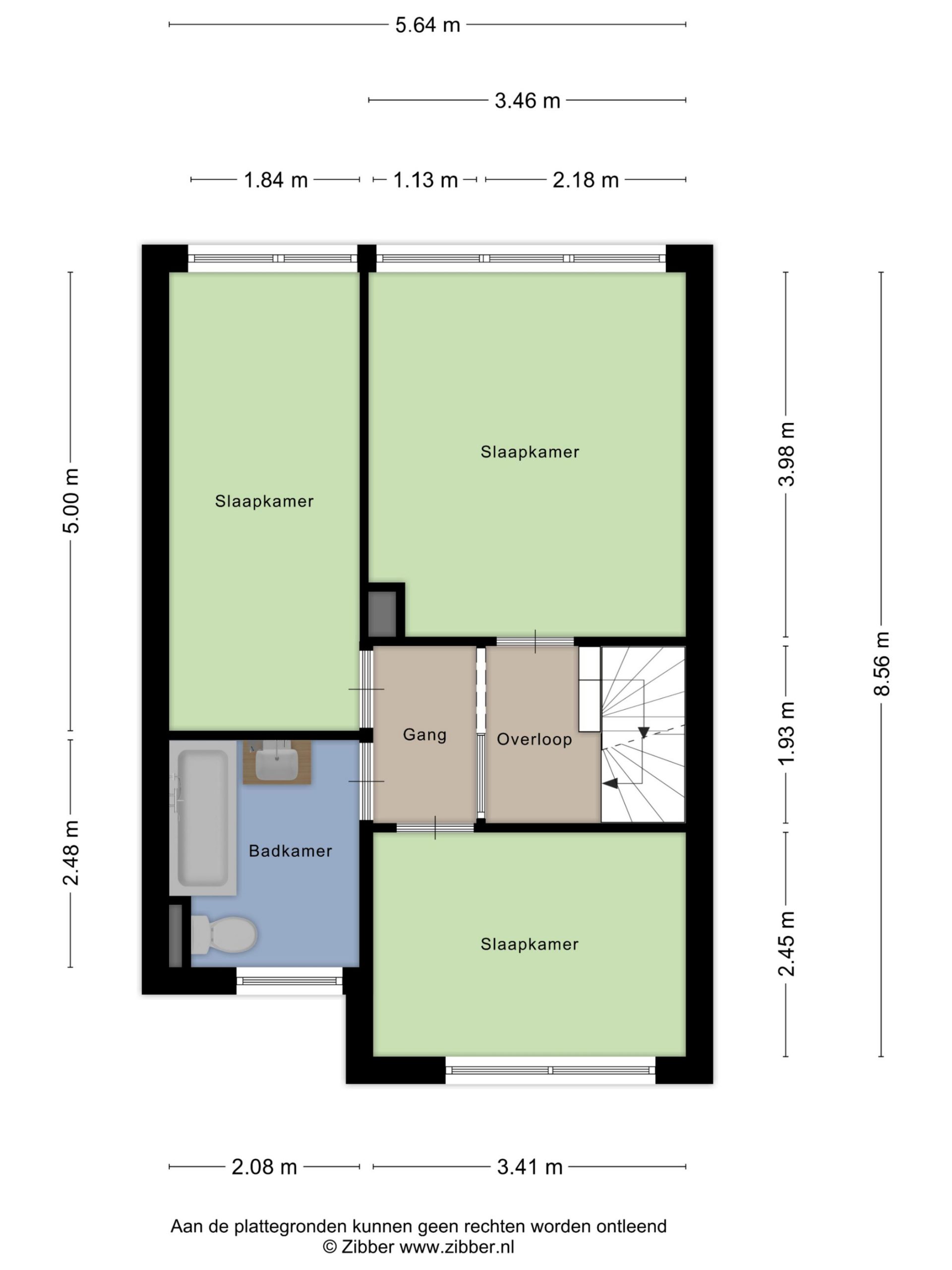 Overloop met laminaat vloer en stucwerk wandafwerking. Slaapkamer 1 aan de achterzijde met laminaat vloer, deels stucwerk wandafwerking en deels behang wandafwerking en een rolluik. Slaapkamer 2 aan de achterzijde met laminaat vloer, deels stucwerk wandafwerking en deels behang wandafwerking en een rolluik. Slaapkamer 3 aan de voorzijde met laminaat vloer, deels stucwerk wandafwerking en deels behang wandafwerking en een rolluik.