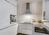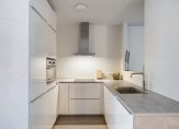 Kitchen renewed in 2024 with PVC flooring with underfloor heating and plastered wall finish. U-shaped kitchen (2024) with various built-in appliances: refrigerator, freezer, combi oven/microwave, 4-burner hob, extractor hood, dishwasher, Quooker, and multiple storage cabinets and drawers. Attractive sightline into the sitting area.