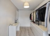 Overloop met laminaatvloer en een groot raam. Ruime bergkast met de CV-installatie (Remeha Calenta, 2012). Royale slaapkamer 4 met laminaat vloer. In deze kamer bevindt zich tevens de aansluiting voor de wasmachine en droger.