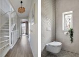 Entree met PVC-vloer, deels stucwerk- en deels behangwandafwerking. Meterkast met 11 groepen en 3 aardlekschakelaars. Deels betegeld toilet met hangcloset, fonteintje en mechanische afzuiging.