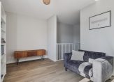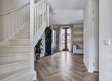 Open overloop met laminaatvloer en stucwerk wandafwerking.