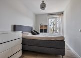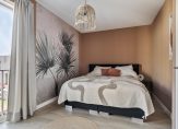 Slaapkamer 1 (voorzijde) met PVC-vloer, stucwerk wandafwerking en Frans balkon.