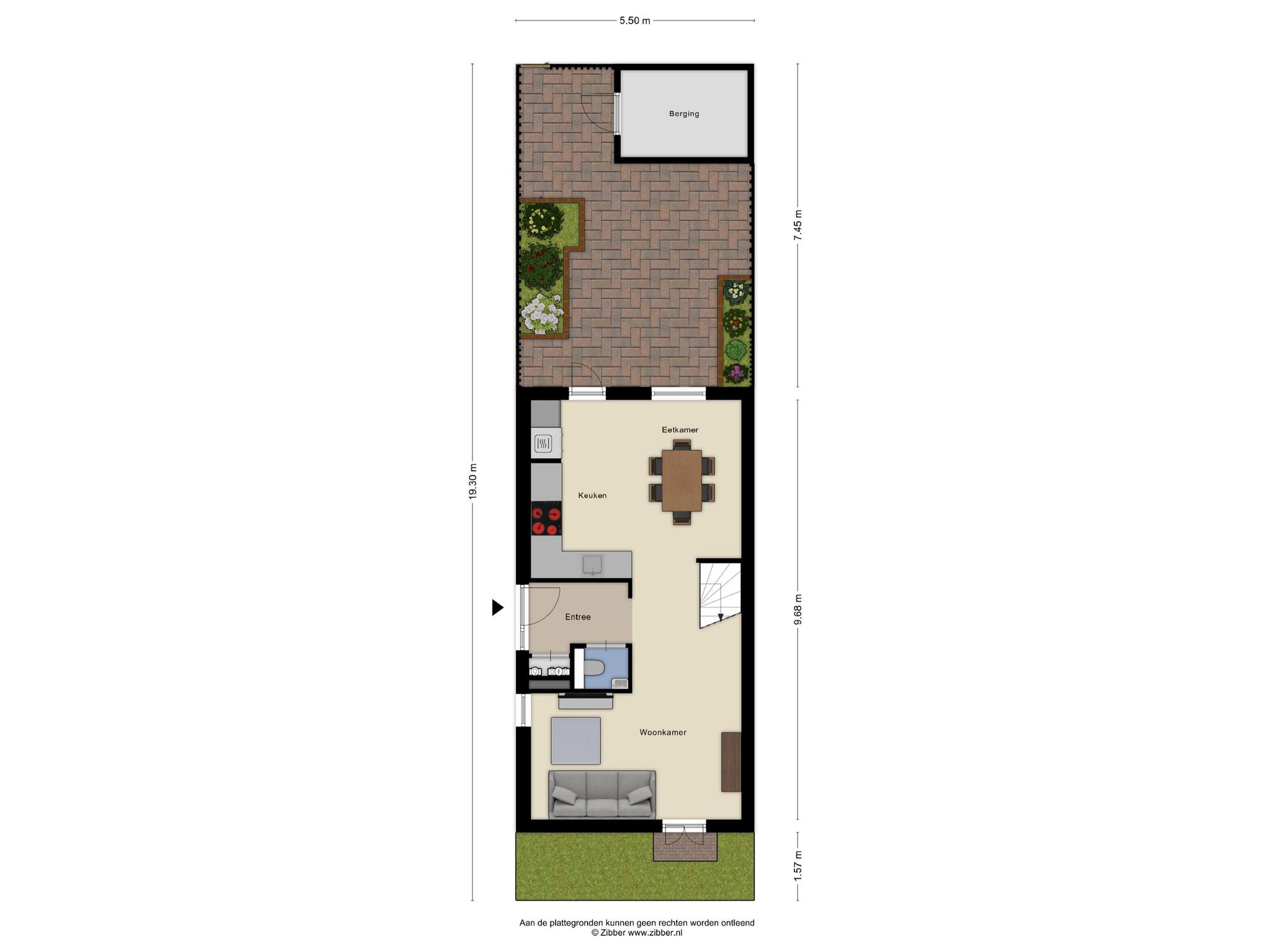 De verzorgde achtertuin ligt op het zonnige zuidwesten en beschikt over een berging en een achterom.