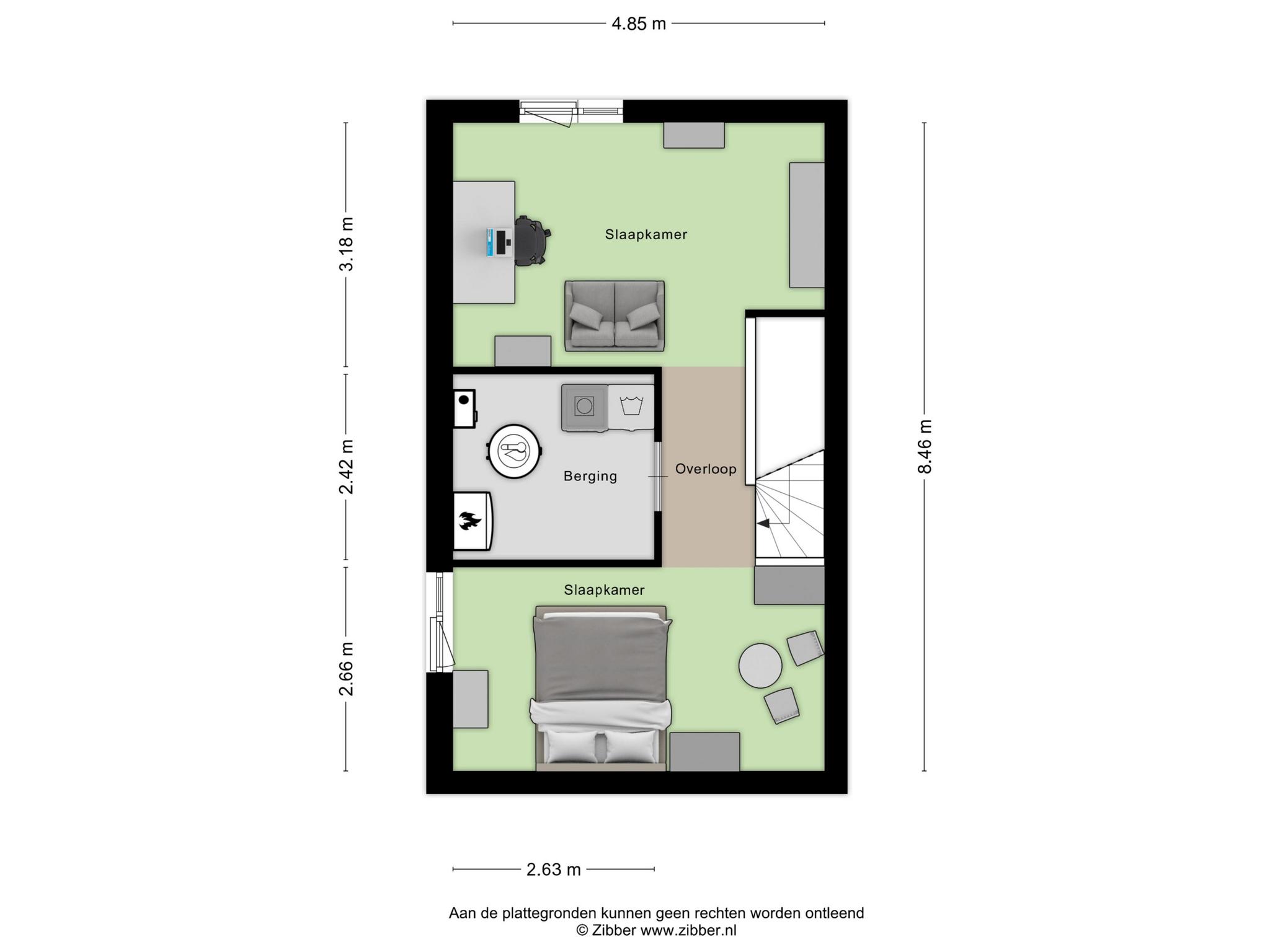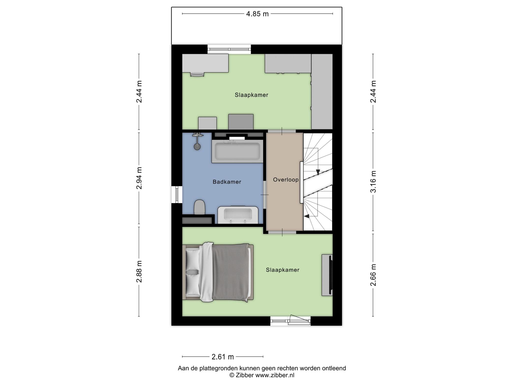 Slaapkamer 3 (achterzijde) met laminaatvloer en stucwerk wandafwerking.
