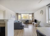 Entree appartement met laminaatvloer, stucwerk wanden, garderobe en intercom. Kastruimte met aansluiting voor de wasmachine en bergruimte. Separaat, deels betegeld toilet met hangcloset en fonteintje. Moderne badkamer met tegelvloer en betegelde wanden. De badkamer is voorzien van een wastafel met meubel en spiegelkast, wandmeubel, inloopdouche en designradiator. Slaapkamer 1 met laminaatvloer en stucwerk wandafwerking. Slaapkamer 2 met laminaatvloer en stucwerk wandafwerking. Ruime woonkamer met veel lichtinval met extra zijraam, laminaatvloer, stucwerk wanden en deur naar het balkon. Flink, overdekt balkon bereikbaar vanuit woonkamer. Het balkon is gelegen op het oosten. Zeer complete, half open keuken met keukenopstelling aan 2 zijdes voorzien van 4-pits gaskookplaat, afzuigkap, oven, magnetron, koelkast, vriezer vaatwasser en verschillende opbergkastjes en lades.