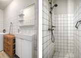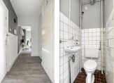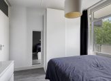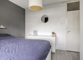 Slaapkamer met laminaatvloer en fraai uitzicht op de groenvoorziening aan de voorzijde. Deels betegelde badkamer met inloopdouche, wastafel met meubel (2016) en ventilatie. In de badkamer bevindt zich de aansluiting van de wasmachine. Separaat deels betegeld toilet met fonteintje en afzuiging.