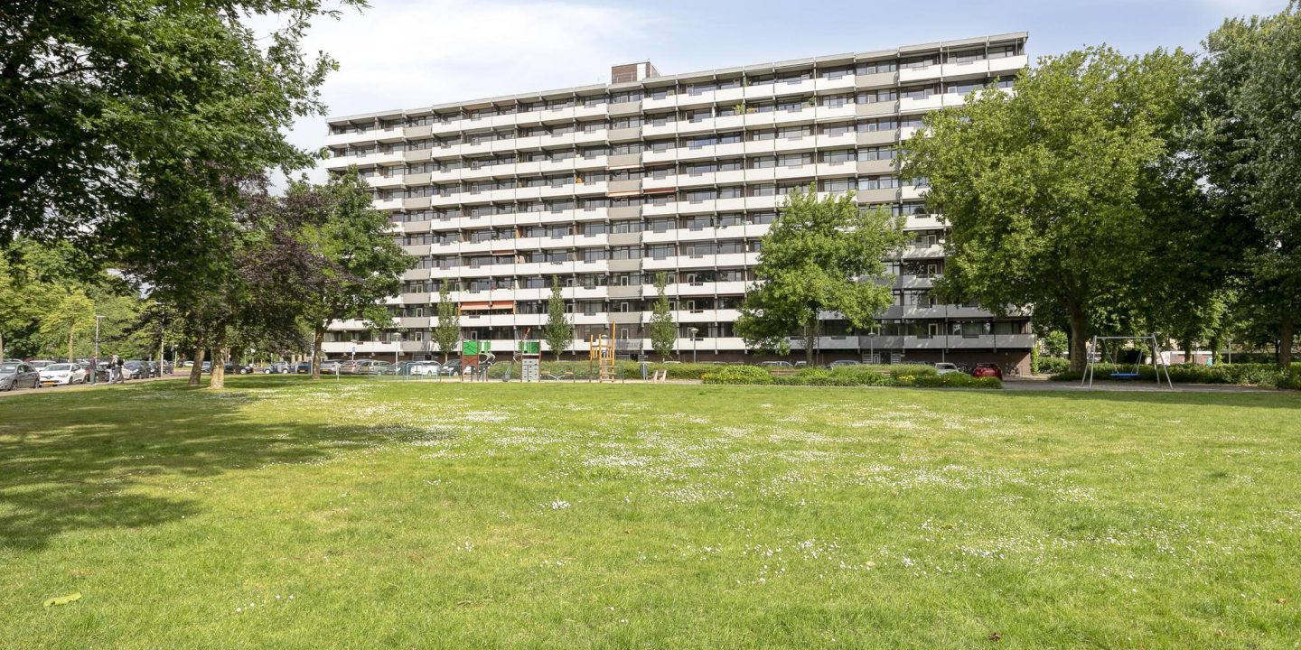 – Fraai 2-kamer appartement (voorheen 3 kamers) op de 5e verdieping gelegen met een ruime balkon over de volledige breedte met een vrij en weids uitzicht op de groenvoorziening en een eigen berging op de begane grond.