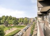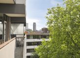 Het balkon is gunstig gelegen op het zonnige zuiden met een weids uitzicht op een groenvoorziening.