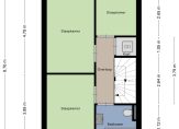 Overloop met tegelvloer en stucwerk wanden. Kast met aansluitingen wasapparatuur. Slaapkamer 1 is gelegen aan de voorzijde en is voorzien van een tegelvloer, stucwerk wanden en Frans balkon. Slaapkamer 2 is gelegen aan achterzijde en heeft een tegelvloer en stucwerk wanden. Slaapkamer 3 aan achterzijde met tegelvloer en stucwerk wanden. De badkamer is gelegen aan de voorzijde en is voorzien van een tegelvloer, betegelde wanden, een wastafel met meubel, ligbad (met douche), een hangcloset en mechanische afzuiging.