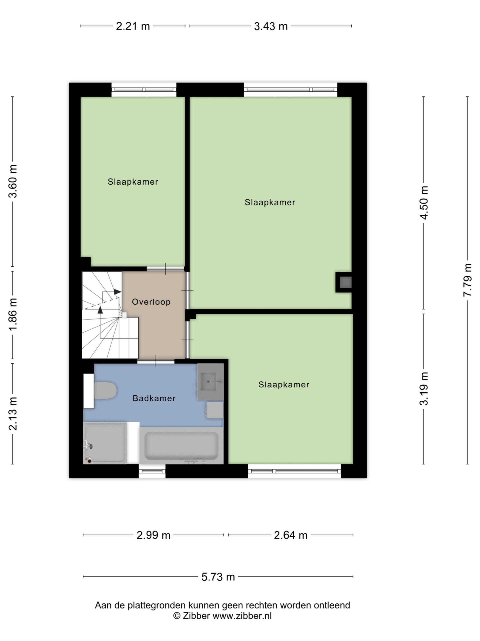 Overloop met tapijtvloer en stucwerk wandafwerking. Slaapkamer 1 aan de achterzijde met laminaatvloer en stucwerk wandafwerking. Slaapkamer 2 achter met laminaatvloer en airco. Slaapkamer 3 voorzijde met tapijtvloer en stucwerk wandafwerking. Volledig betegelde badkamer met ligbad, douche, wastafelmeubel, decorradiator en hangend toilet.