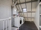 Voorzolder met laminaatvloer en stucwerk wandafwerking, CV-ketel ( Intergas HRE, 2022) en aansluitingen voor wasmachine en droger. Slaapkamer 4 met dakkapel aan de achterzijde, tapijtvloer en stucwerk wandafwerking. Luik naar bergvliering. Slim ingedeelde etage met volop gebruiksmogelijkheden.